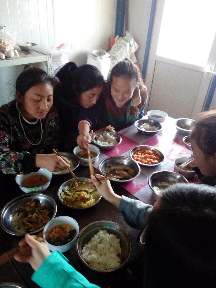 志愿者们还分别给每一个孩子留下了美好的祝福,并留下了自己的联系方式,方便孩子们以后问问题。美好的时间在温暖的气氛中悄然流逝,转眼间到了午餐时间。两名志愿者利用厨房里的食物,自己动手准备了一份堪称丰盛的午餐。志愿者与孩子们共进午餐,互相聊天,现场气氛十分融洽。饭后,孩子们坚持自己洗碗,我们笑着被“赶”出了厨房。